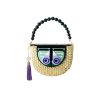 Bag made with corn straw, from a community of artisans in the city of Caldas / MG, half-moon model, with acrylic lid, with magnetic clasp closure, with short handle with synthetic beads, and long brass chain handle, with pendant with synthetic bead and cotton thread fringe, metals with gold finish. Handmade by Brazilian artisans.