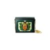 Velvet bag with acrylic application, featuring a scarlet embroidered with beads, glass beads, and glass crystal. Includes a pendant with a synthetic bead and cotton thread fringe. The bag comes with a gold-tone metal chain. Handmade by Brazilian artisans.
