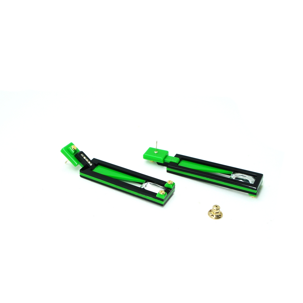 Earring Long Deco Rectangular Cut Stone