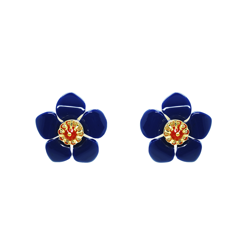 Acrylic earring, handmade, with glass and metal bead with golden finish.