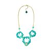Bracelet with charms made of acrylic and chain, ‘T’ clasp closure, fish pendant with shell pearl application, with natural stone bead, freshwater pearls (baroque pearl), metals with golden finish. Handmade by Brazilian artisans.