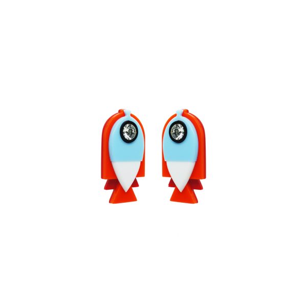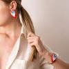 Earring made of acrylic, with glass rhinestones, metals with golden finish. Handmade by Brazilian artisans.