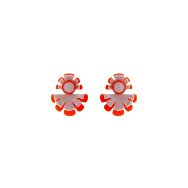 Earring made of acrylic, short model, with glass stone application, brass earring pin, metals with gold finish. Handmade by Brazilian artisans.